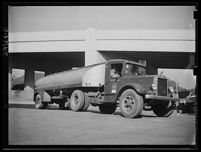 Following the Second World War the U.S. saw a rising expansion of over the road trucking.  By the late 1950s the US was, additionally, overhauling its Interstate highway system via the Defense Department's budget with new "defense" highways, which were much improved compared to the old Interstate highway system.  With the greatly improved roads, by the 1960s, interstate long haul trucking was in an advance state of supplanting the railroads for a lot of American freighting.  At the same time, the diesel engine supplanted the gasoline engine for semi tractors.  A very uncommon engine for motor vehicles in the United States prior to the 1950s, diesels started coming in somewhere in that period and by the 1960s they'd completely replaced gasoline engines for over the road semi tractors.  Now, of course, diesels have become fairly common for heavy pickups as well, and are even starting to appear in the U.S. in light pickup trucks in spite of the higher cost of diesel fuel.